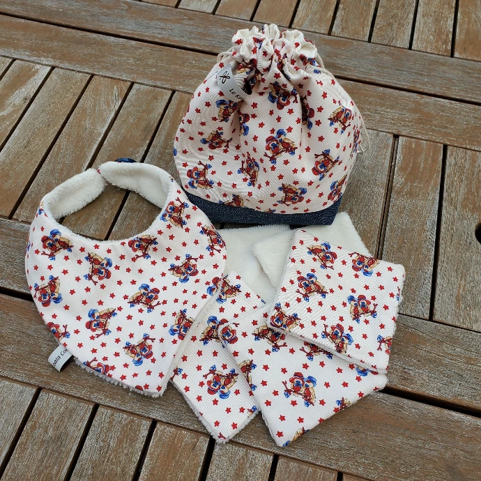 Dans ma collection, vous trouverez des objets dans différents univers. Pour les enfants, j'ai des cadeaux de naissance, des bavoirs et d'autres articles qui leur sont destinés. Pour le bien-être, je propose des lingettes démaquillantes, des pochettes pour savon solide et d'autres accessoires. Dans le domaine de la cuisine, vous découvrirez des porte-plats à tarte, des sacs à pain, à légumes et bien d'autres. Enfin, pour créer une atmosphère chaleureuse, j'ai des coussins et des zafus.